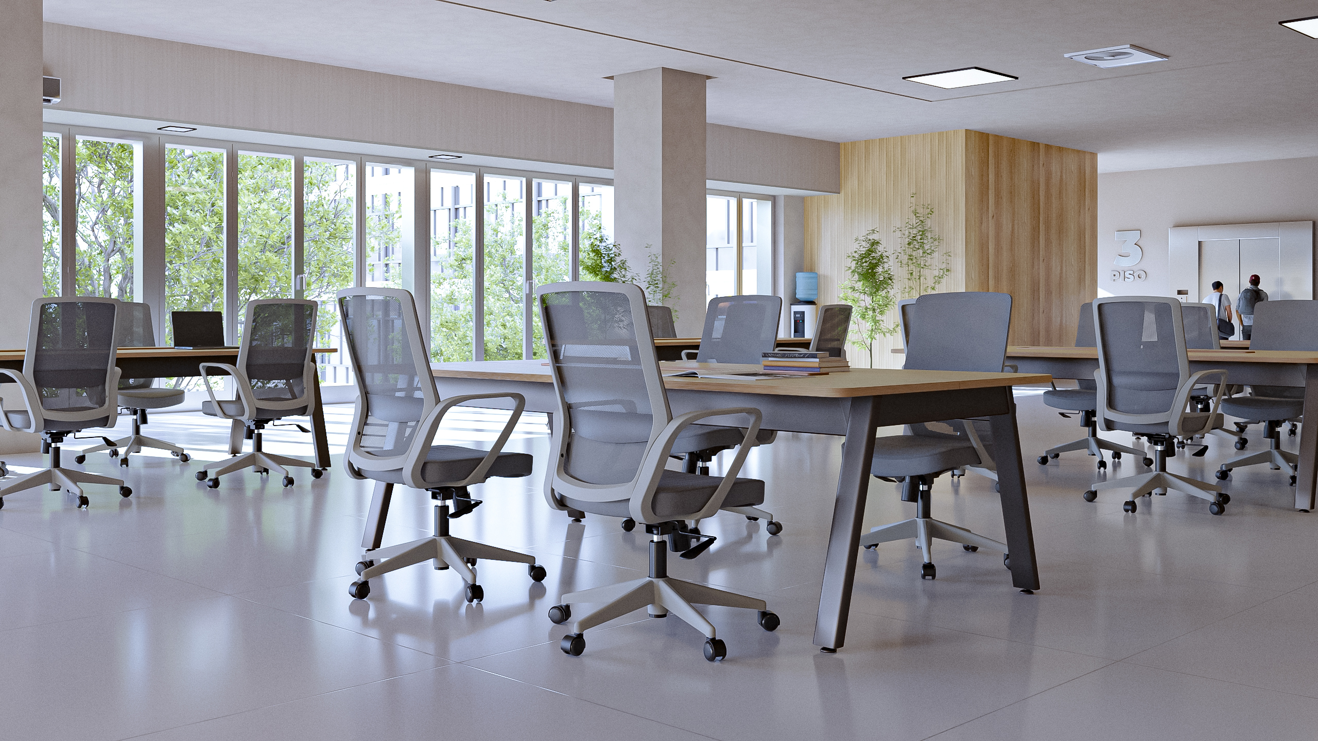 Espaldar en malla, diseñado para ofrecer mayor transpirabilidad y un soporte.