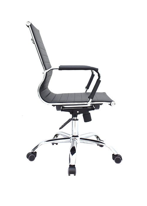 La silla Boss está disponible en versiones con espaldar medio o alto. Su espaldar y asiento están tapizados en cuero sintético, un marco cromado que realza su apariencia. Los brazos cromados fijos con cobertor en cuero sintético añaden confort y elegancia. Incluye un mecanismo basculante con 1 posición de bloqueo y perilla de tensión, además de una base cromada de 320 mm y ruedas de goma para un desplazamiento fluido.