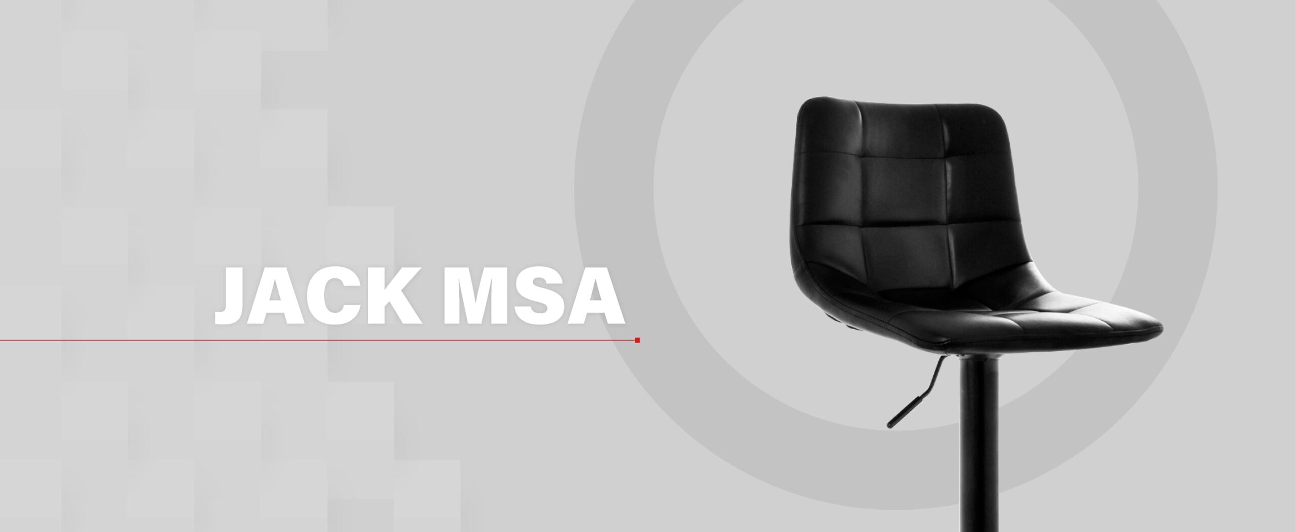 El butaco Jack MSA está fabricado en una monoconcha en cuero sintético y costuras de diseño que aportan un toque sofisticado. Su estructura de bar giratoria incluye un reposapiés metálico negro regulable en altura, ofreciendo comodidad y ajuste personalizado. Ideal para ambientes profesionales que requieren estilo.
