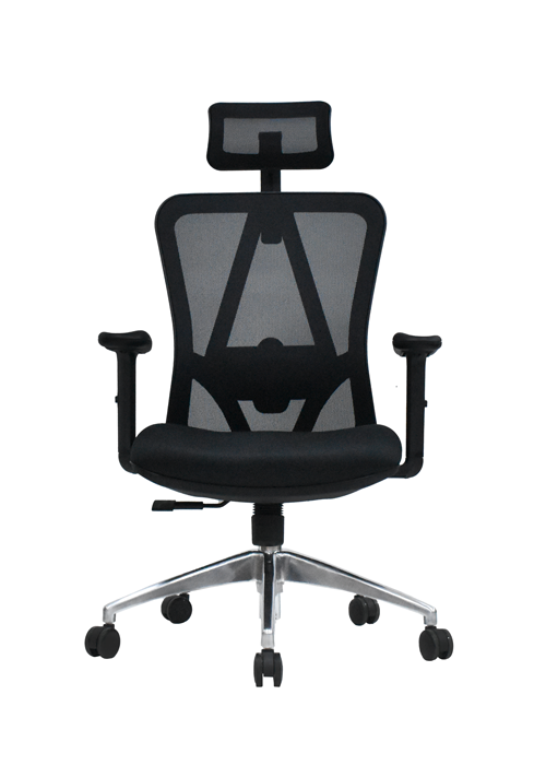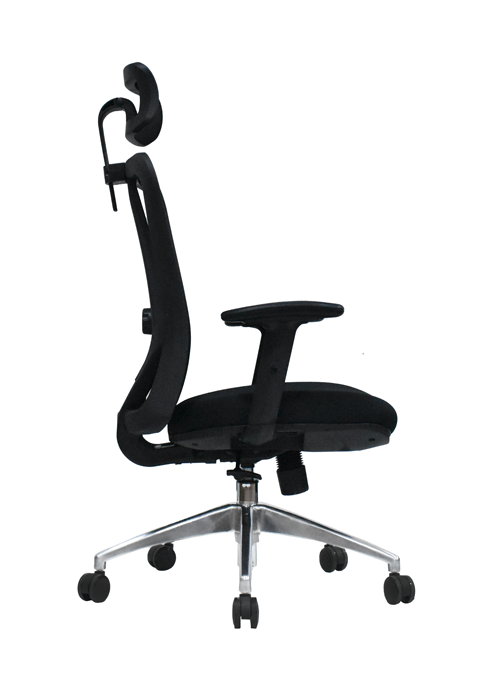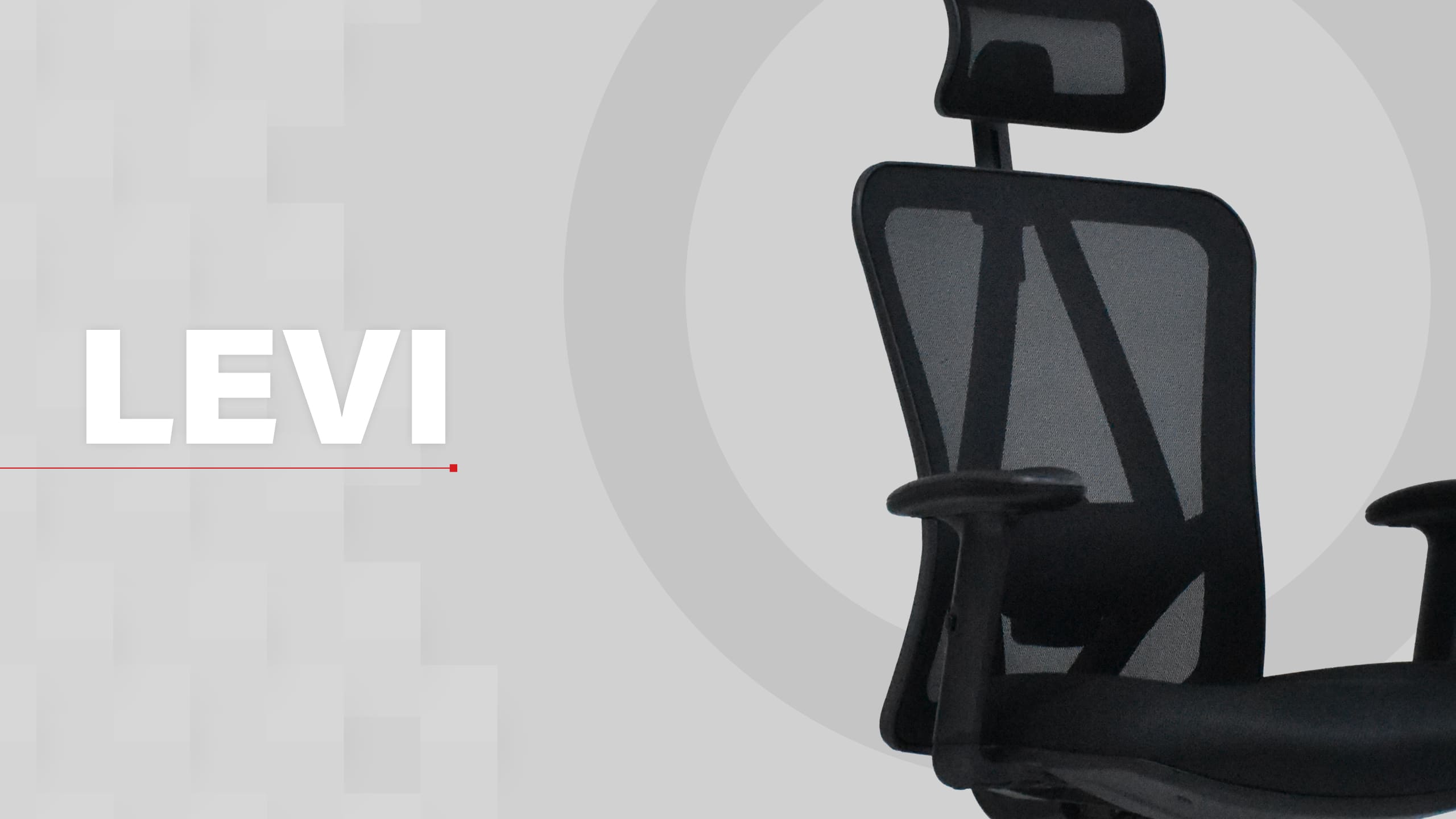 La silla Levi está equipada con cabecero en malla regulable en altura y ángulo para mayor confort. Cuenta con espaldar en malla y un apoyo lumbar tapizado, regulable en altura y profundidad, que mejora el soporte. Los brazos son regulables, mientras que el asiento de espuma laminada con tapizado textil asegura comodidad prolongada. Incluye un mecanismo syncro con 3 bloqueos, base en aluminio de 350 mm y ruedas de goma.