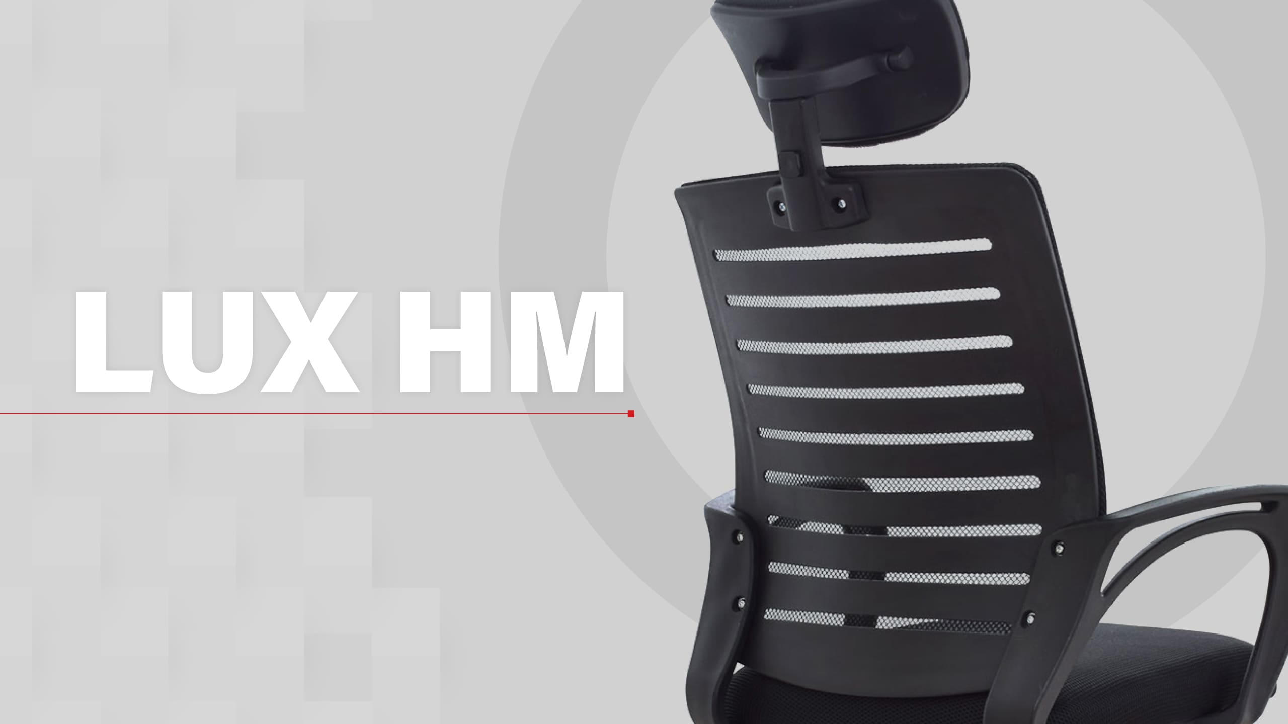 La silla Lux destaca por su diseño ergonómico y funcional. Su cabecero en malla regulable en altura, junto con el espaldar en malla poliéster, brindan soporte óptimo. El asiento de espuma laminada con tapizado textil garantiza comodidad durante el uso prolongado. Los brazos fijos en polipropileno (PP) y el mecanismo basculante con posición de bloqueo y perilla de tensión ofrecen ajustes personalizados. La base cromada de 320 mm y las ruedas de nylon aseguran estabilidad y movilidad. Disponible en color negro.